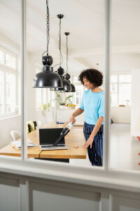 Эффективный помощник в повседневной уборке: ручной аккумуляторный пылесос CVH 3 Plus тщательно удаляет мусор всех видов (например, пыль, волосы или крошки еды) из любых мест. При этом допускающая промывку 2-ступенчатая система фильтрации, состоящая из мелкоячеистой стальной сетки, задерживающей волосы и крупный мусор, и установленного после нее фильтр HEPA-фильтра (по стандарту EN 1822:1998), гарантирует выпуск из аппарата чистого воздуха. Другие его преимущества: высокая сила всасывания, низкий уровень шума и долгий срок службы благодаря применению бесщеточного двигателя постоянного тока, компактность и малый вес, возможность продолжительной (до 20 мин) работы от одного заряда благодаря двум режимам мощности и наличие удобной зарядной станции, позволяющей также хранить аксессуары.